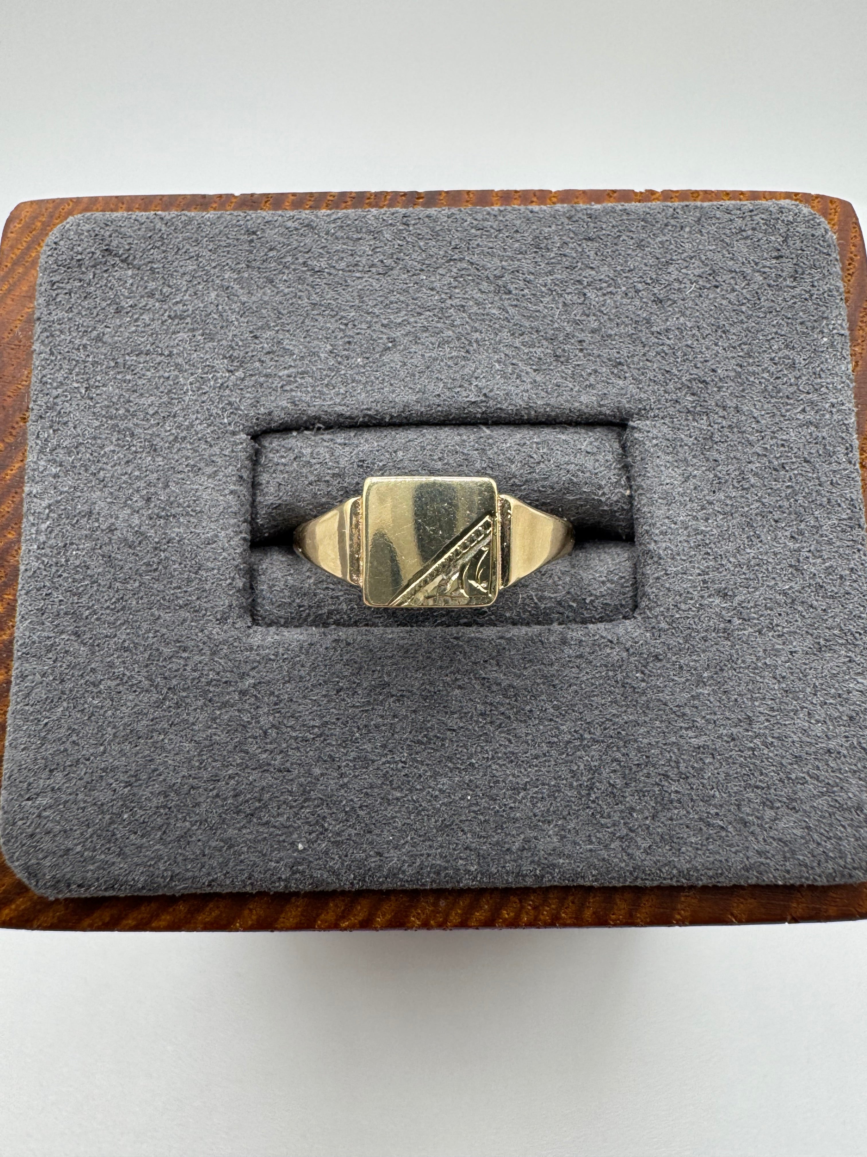 9ct gold engraved shield signet ring