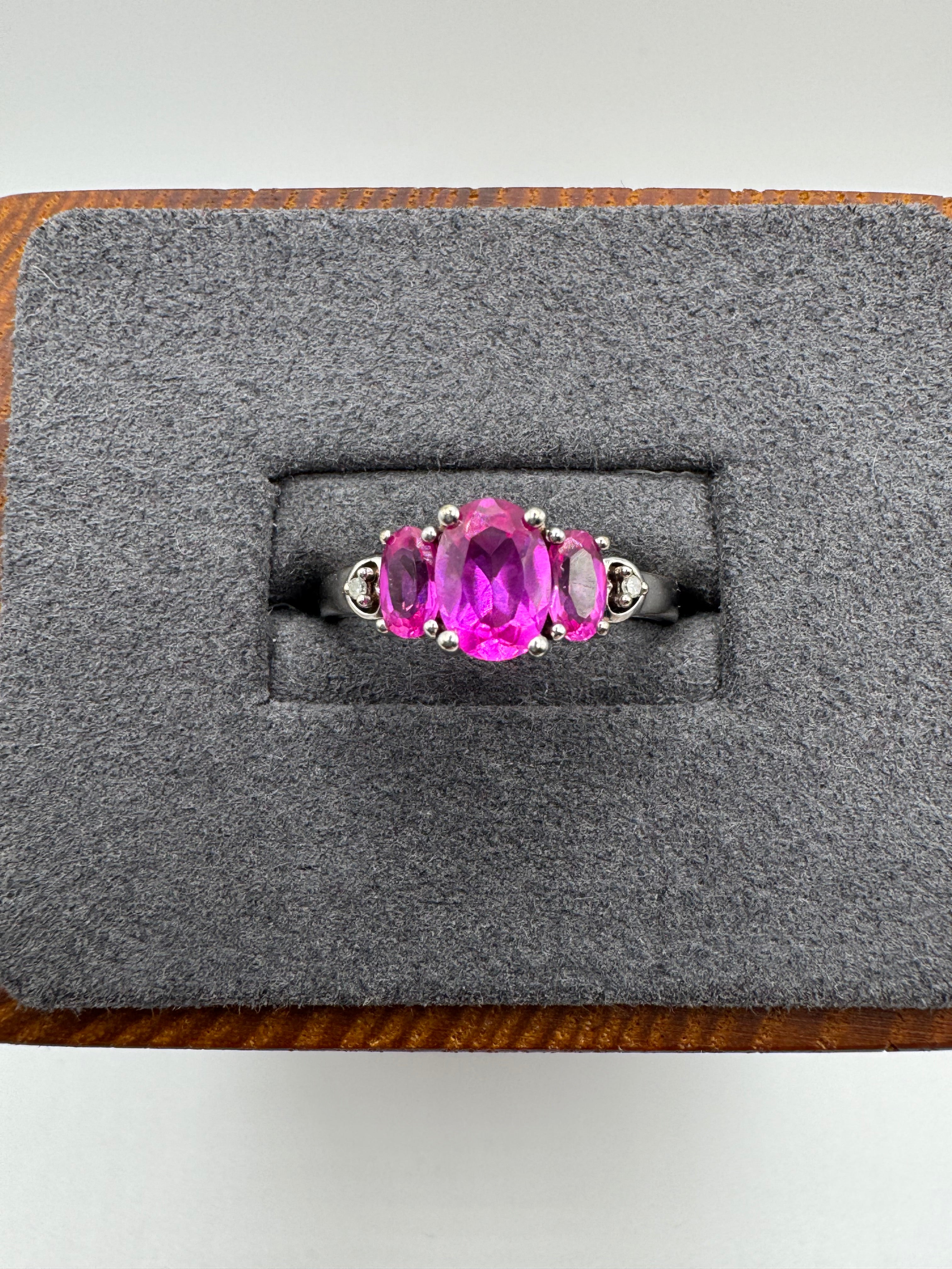 9ct white gold pink sapphire and diamond ring