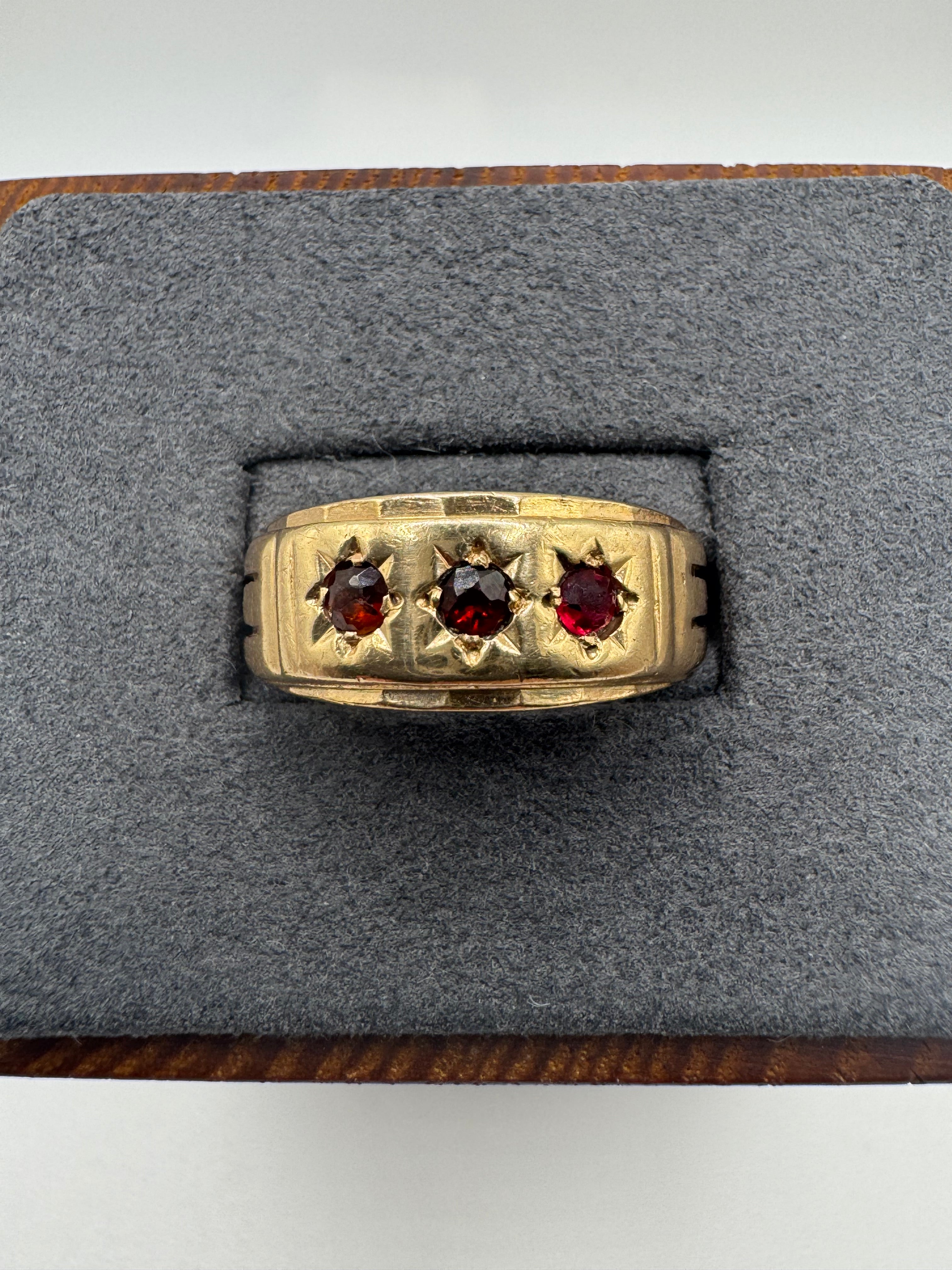 Heavy 9ct gold multi-coloured garnet gypsy ring
