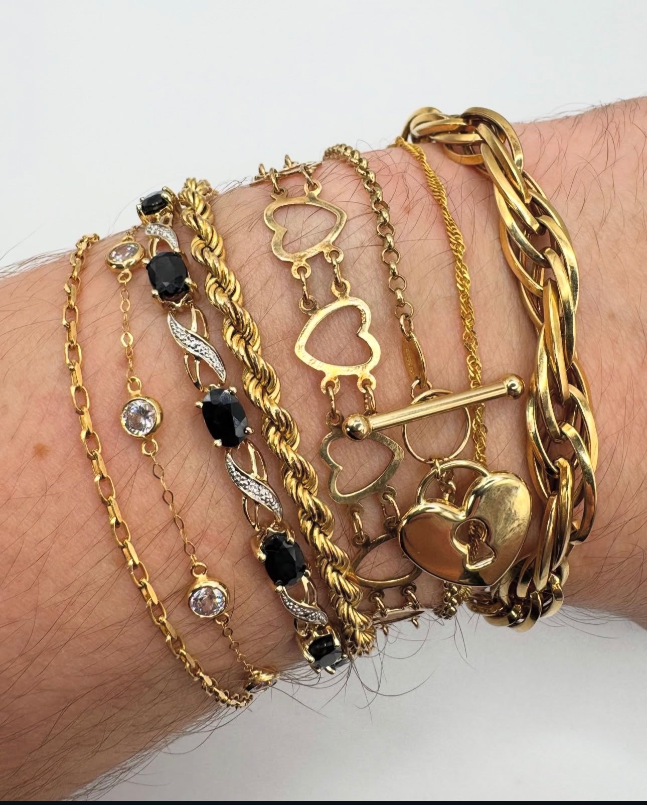 Heavy 9ct gold topaz and amethyst bangle (7.5”)