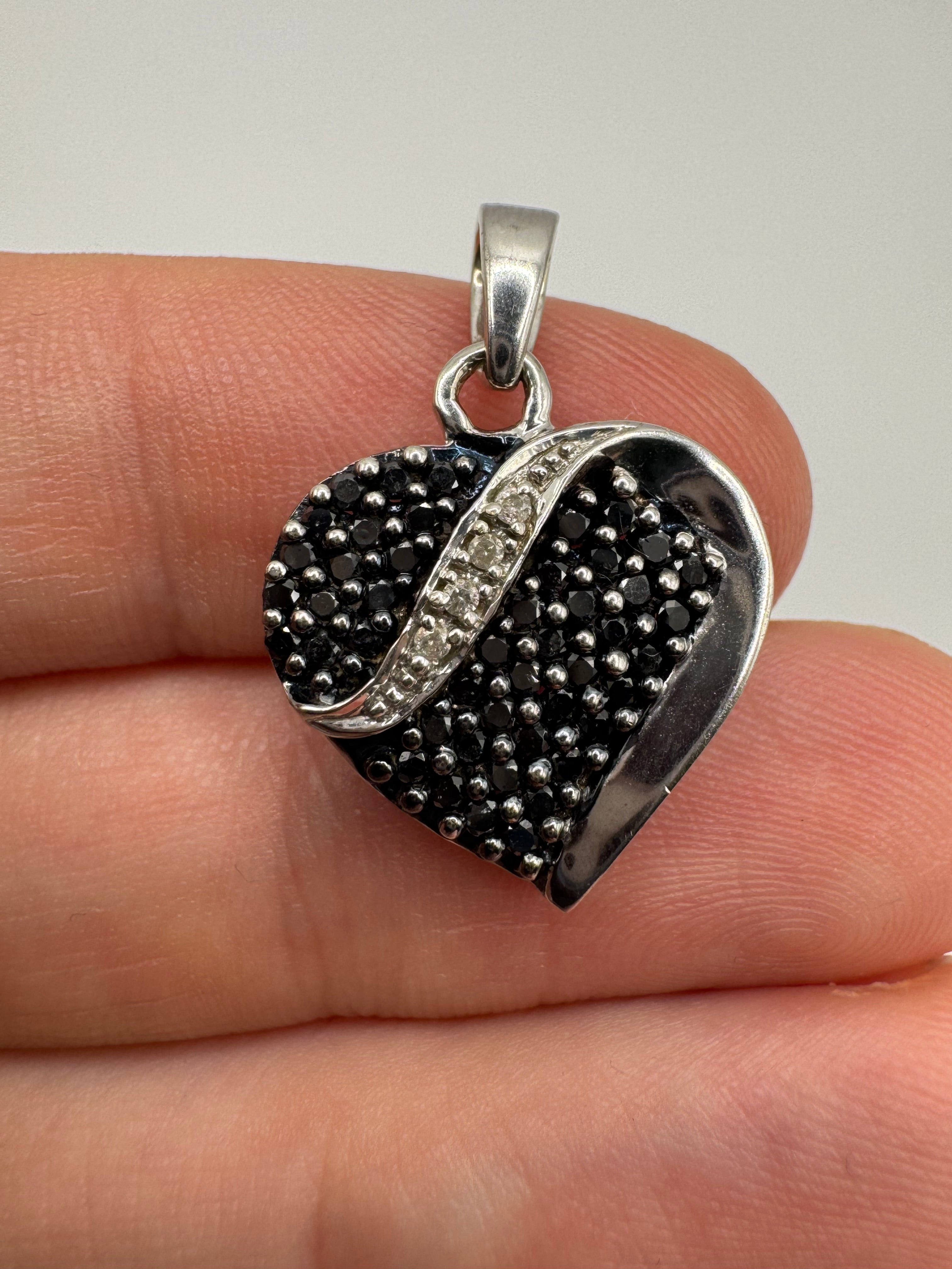 9ct white gold diamond (inc black diamonds) cluster heart pendant