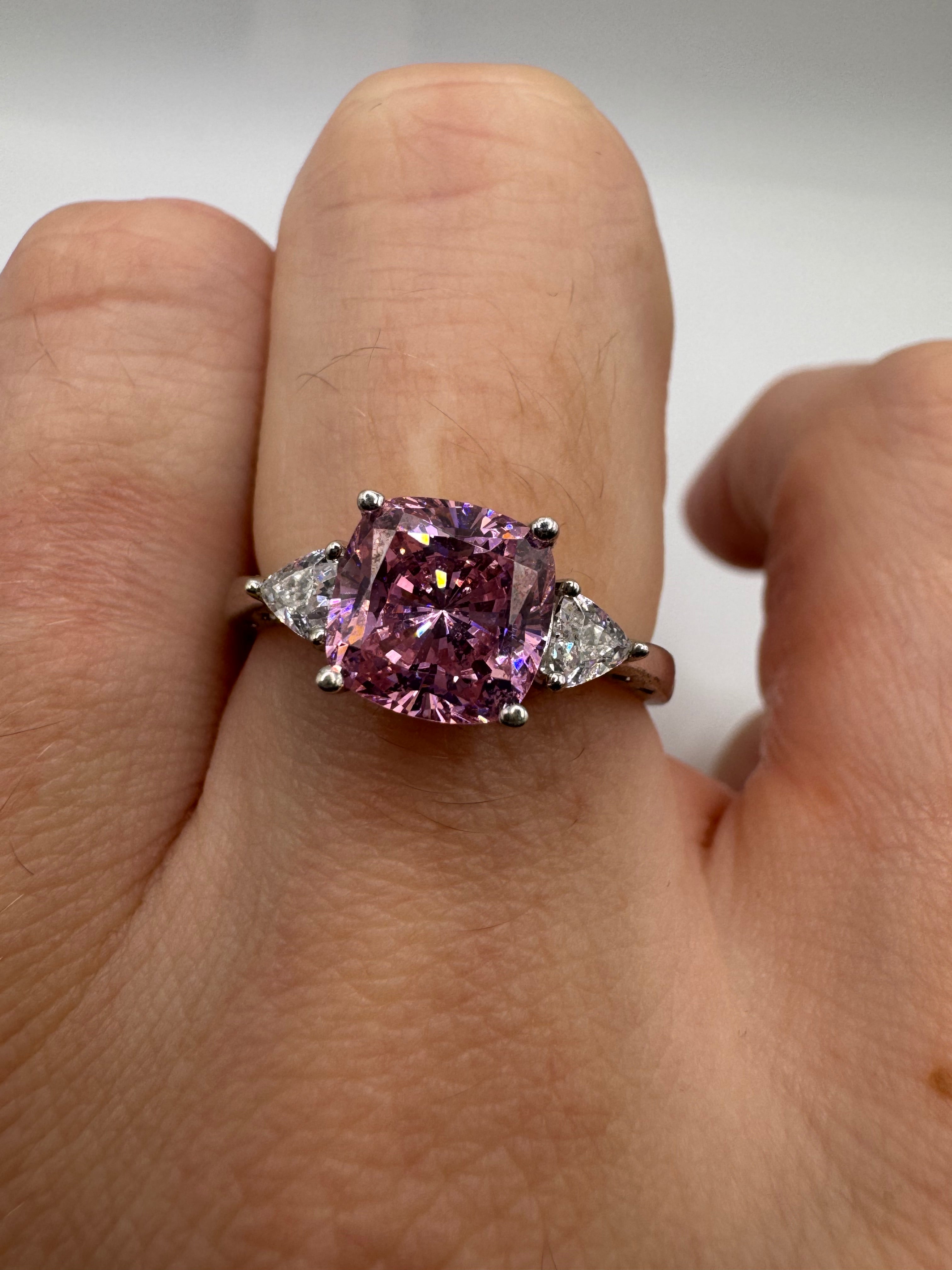Silver sapphire and diamond ring