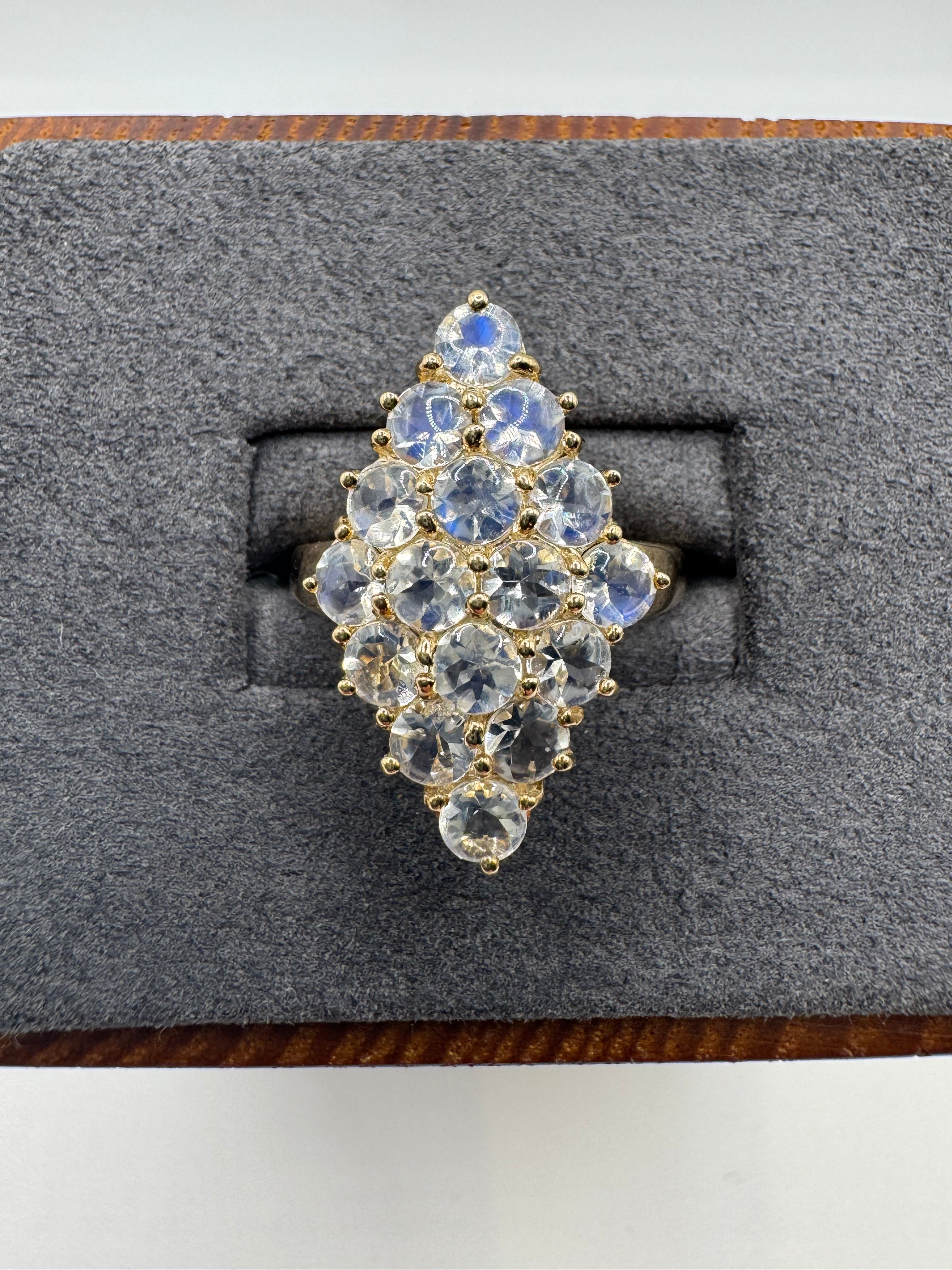 9ct gold rainbow moonstone navette ring