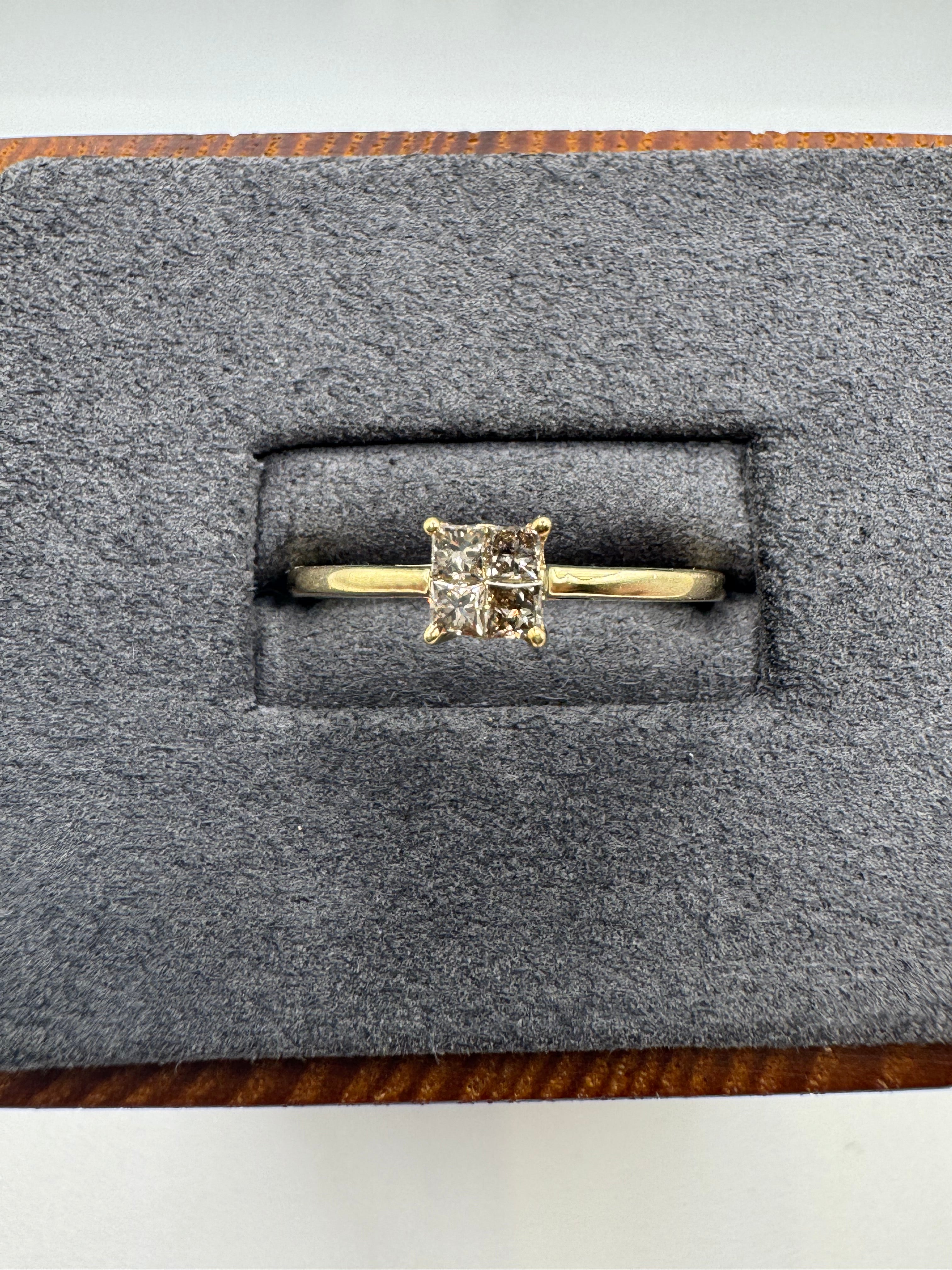 Heavy 9ct gold 4 stone diamond gypsy ring