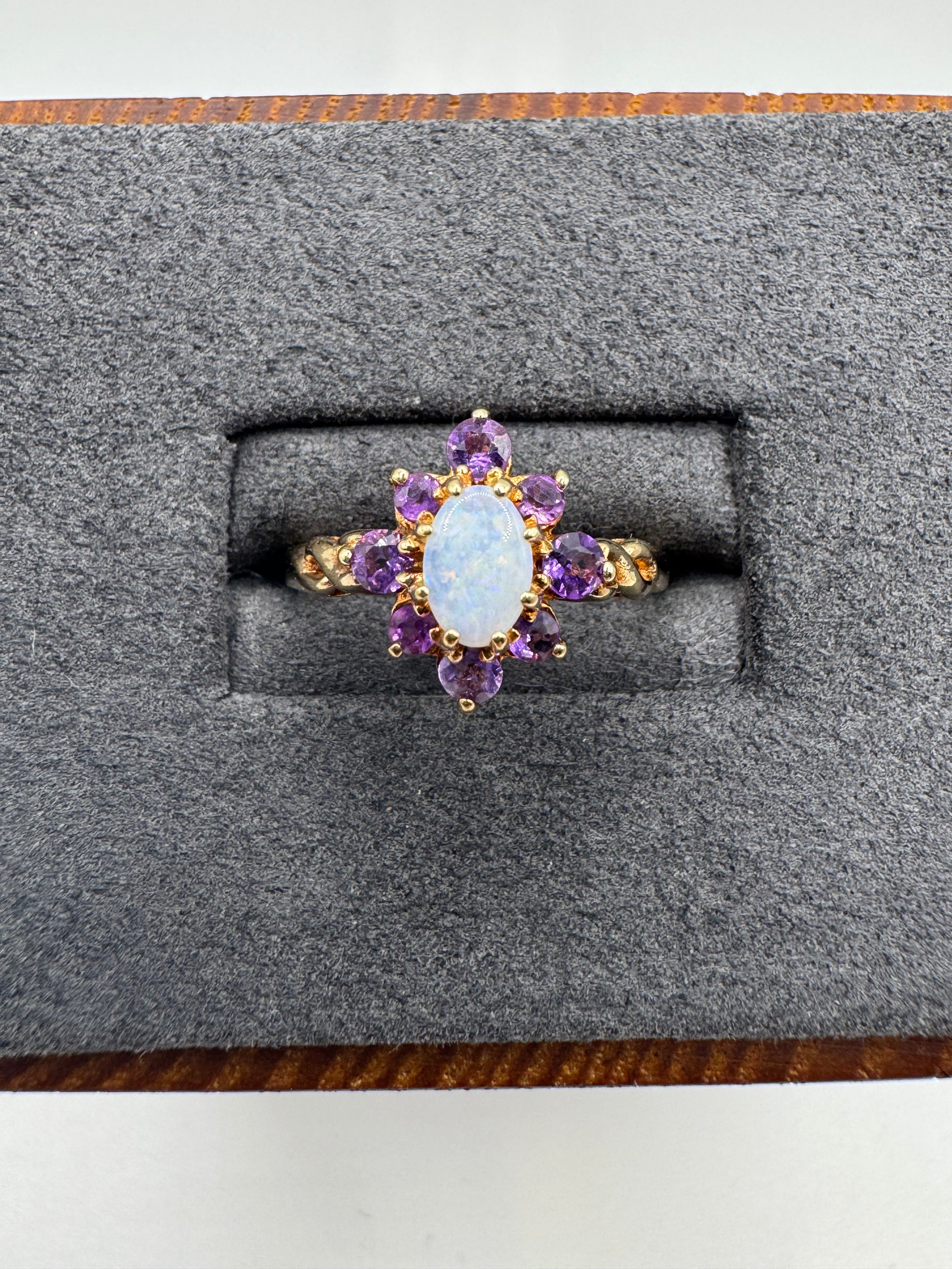 9ct gold opal and amethyst ring