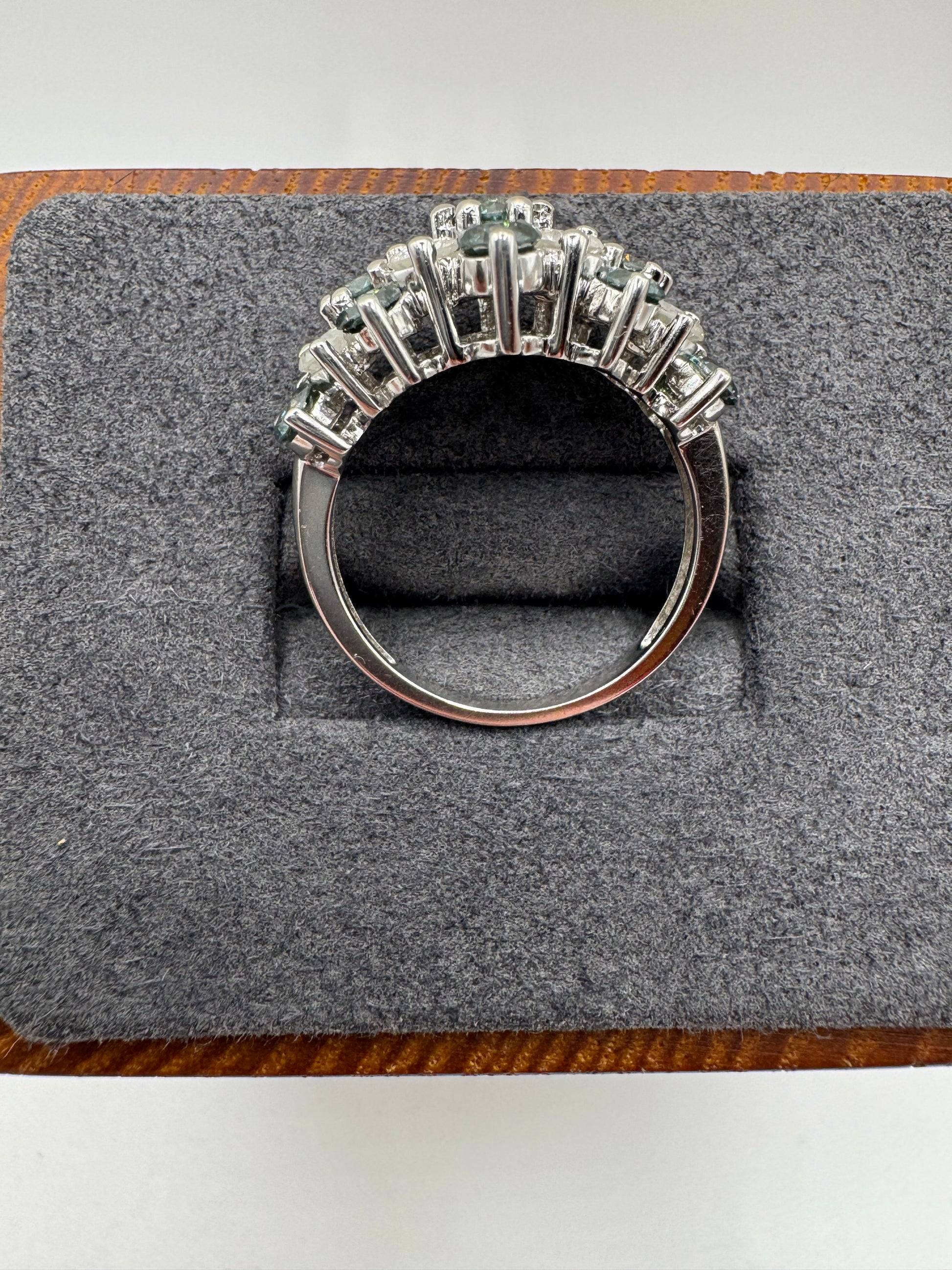 14ct white gold 1.5ct teal and white diamond cluster ring