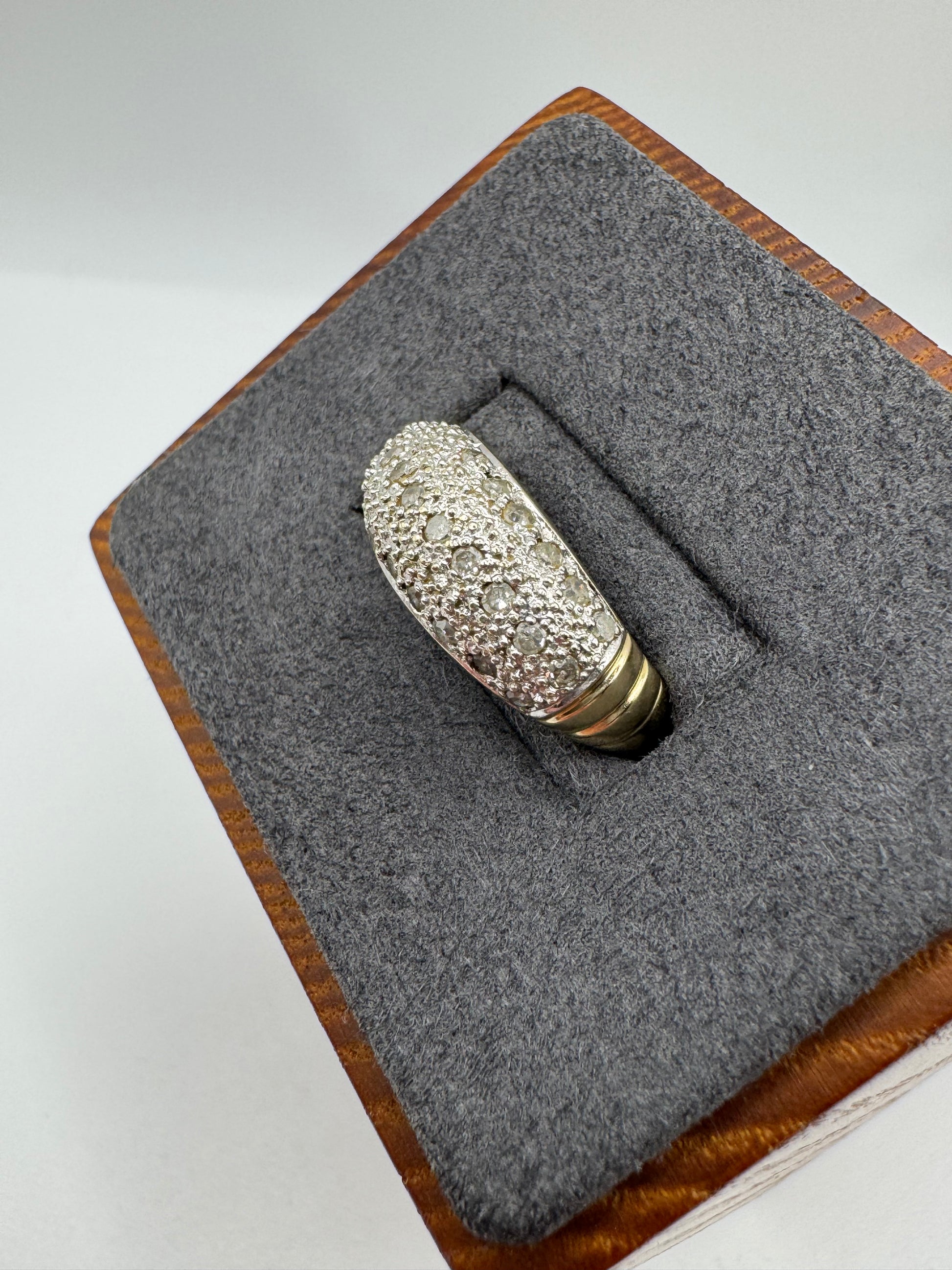 Heavy 9ct gold 50 point diamond bombe ring