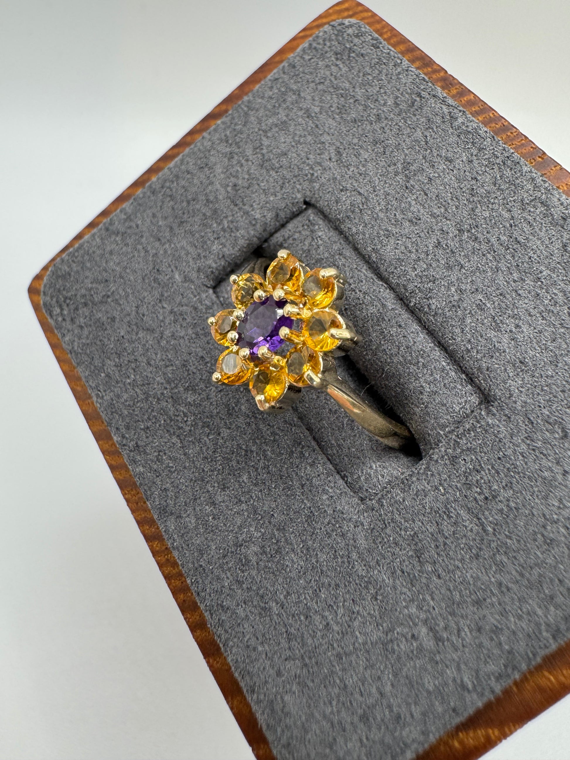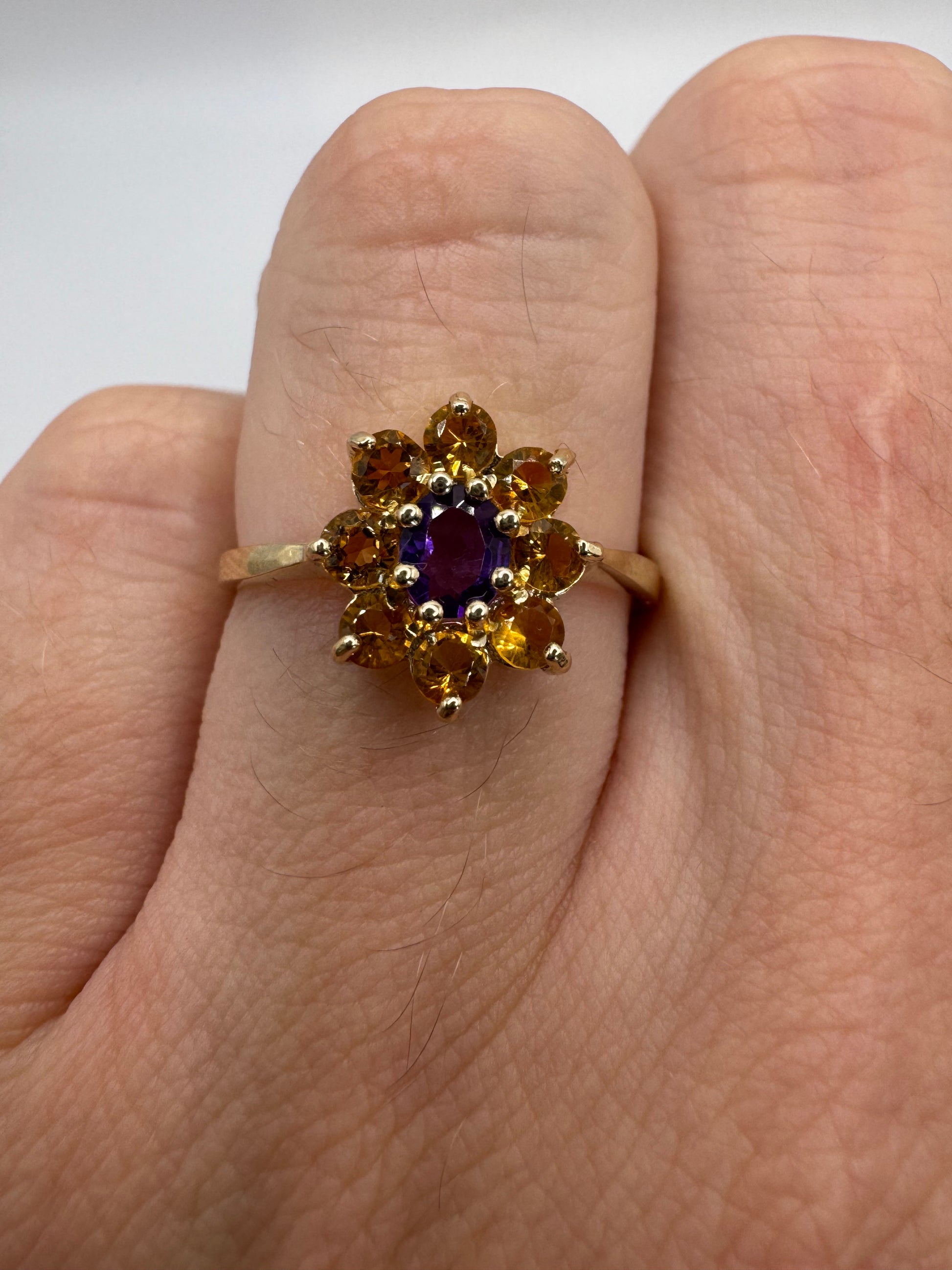 9ct gold amethyst and citrine cluster ring