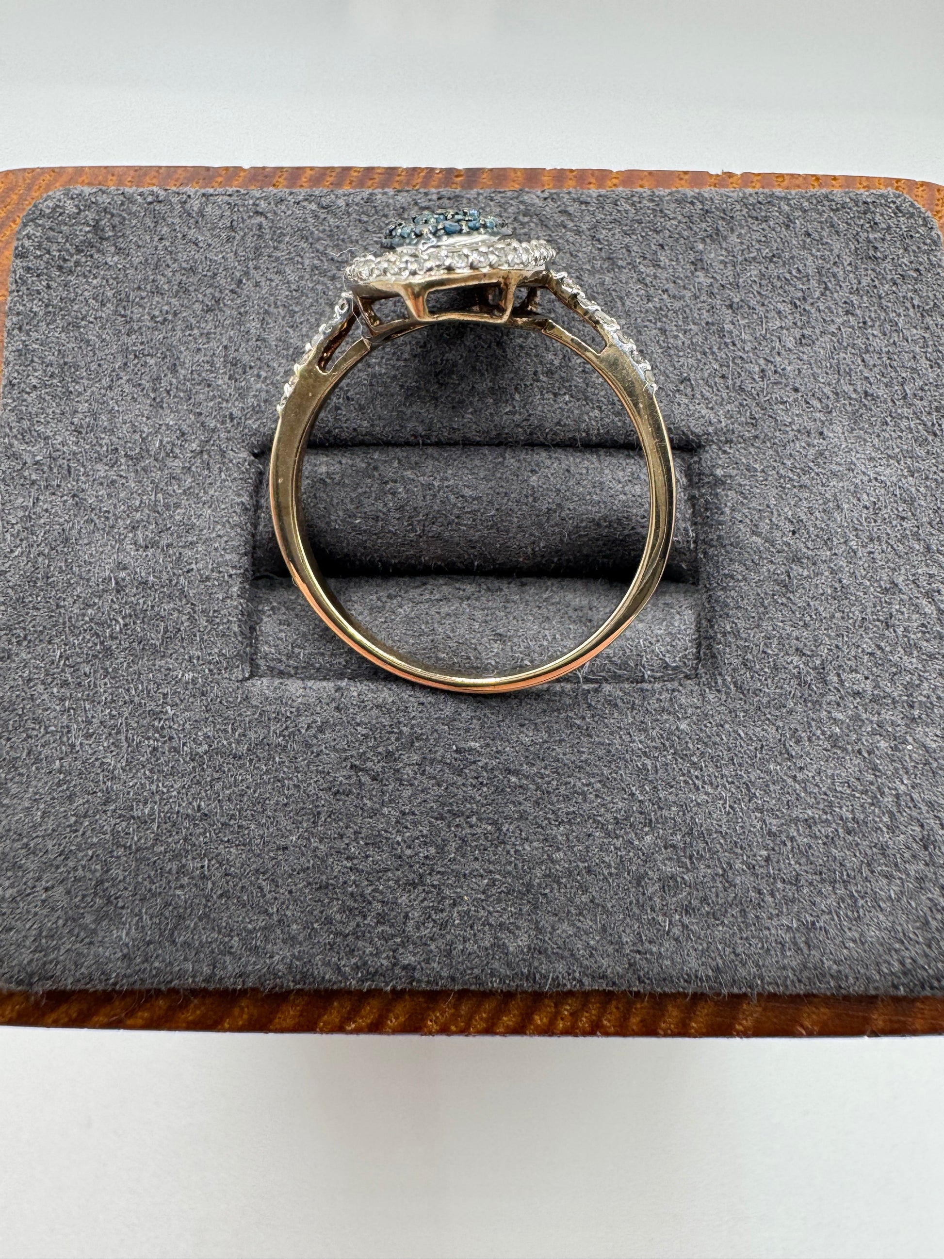 9ct gold blue and white diamond cluster ring