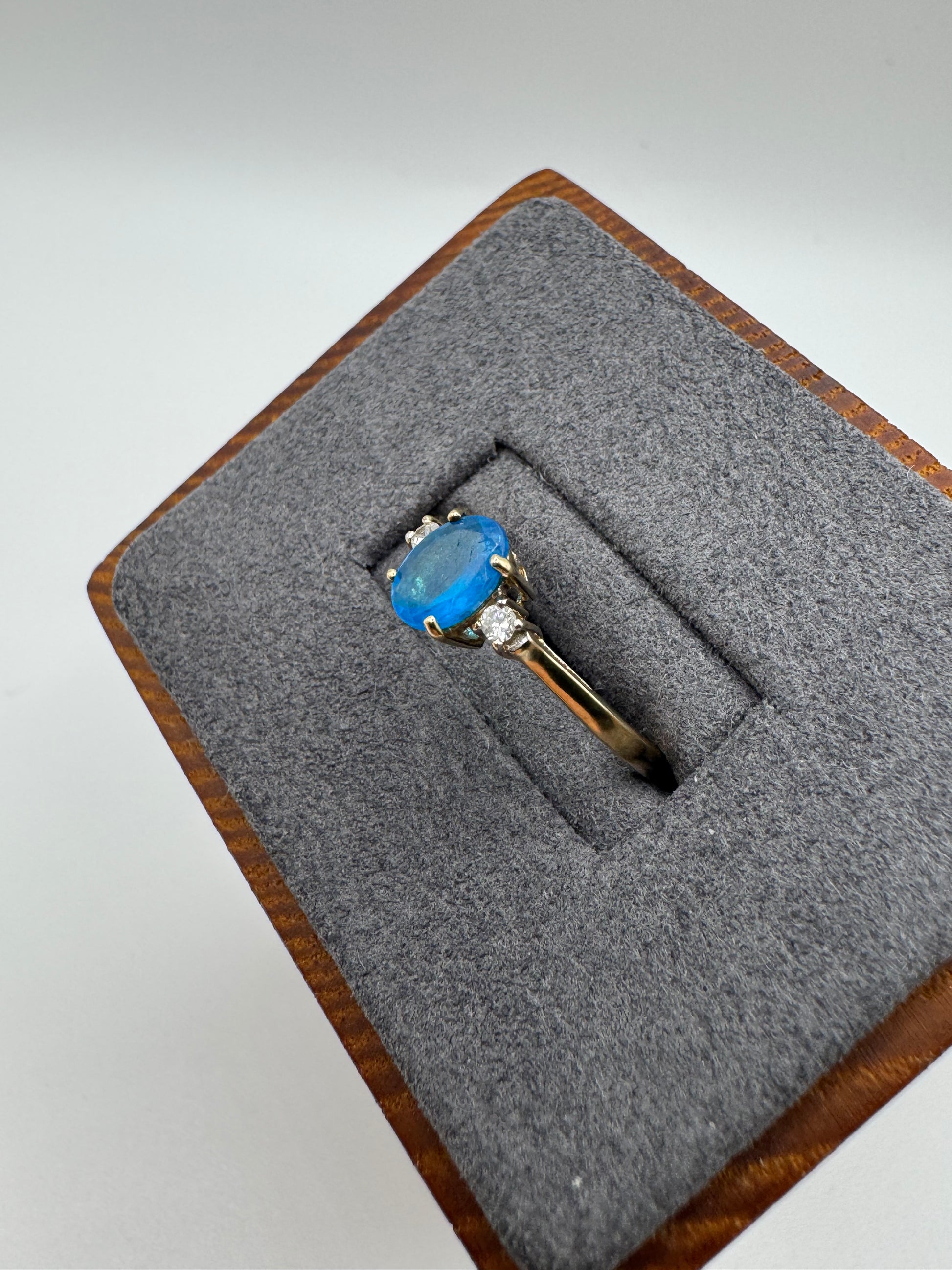 9ct gold blue apatite and diamond ring