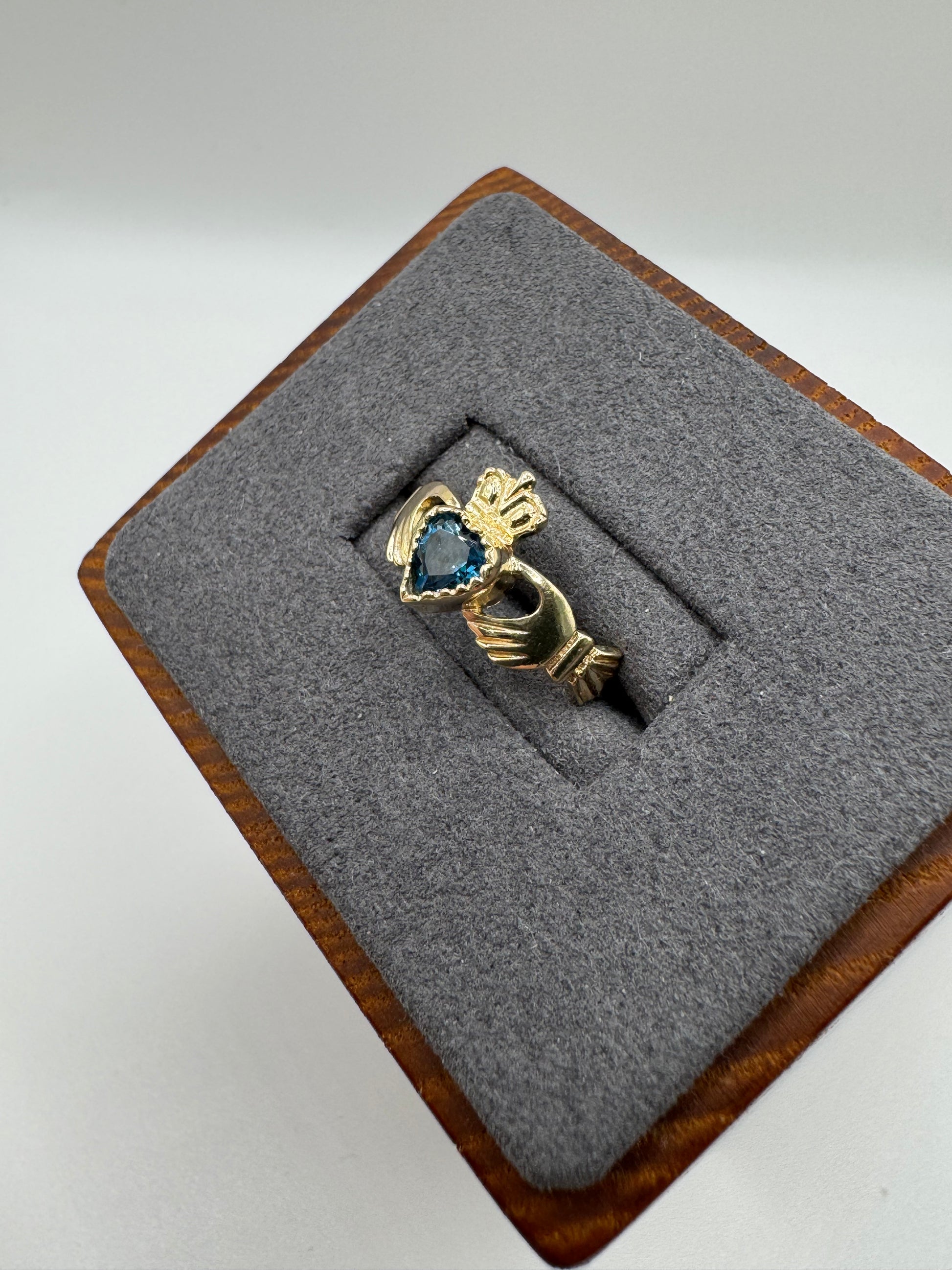 9ct gold blue topaz claddagh ring