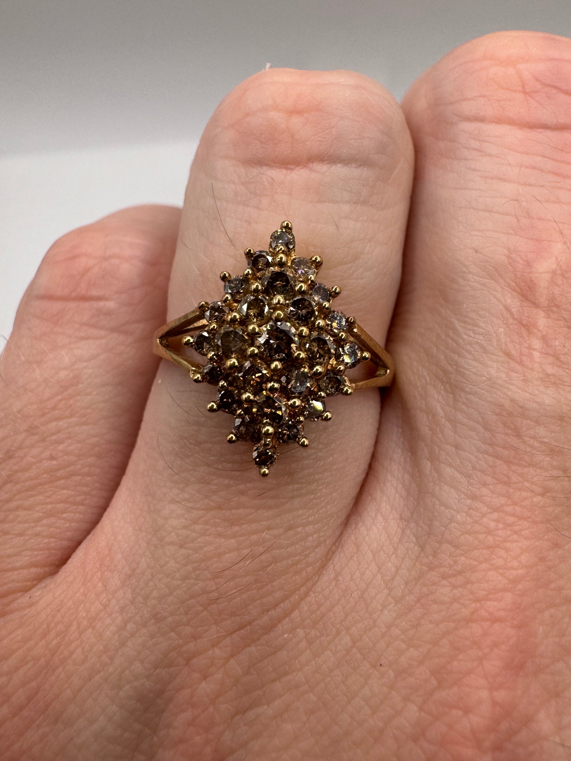 9ct gold 0.75ct champagne diamond cluster ring