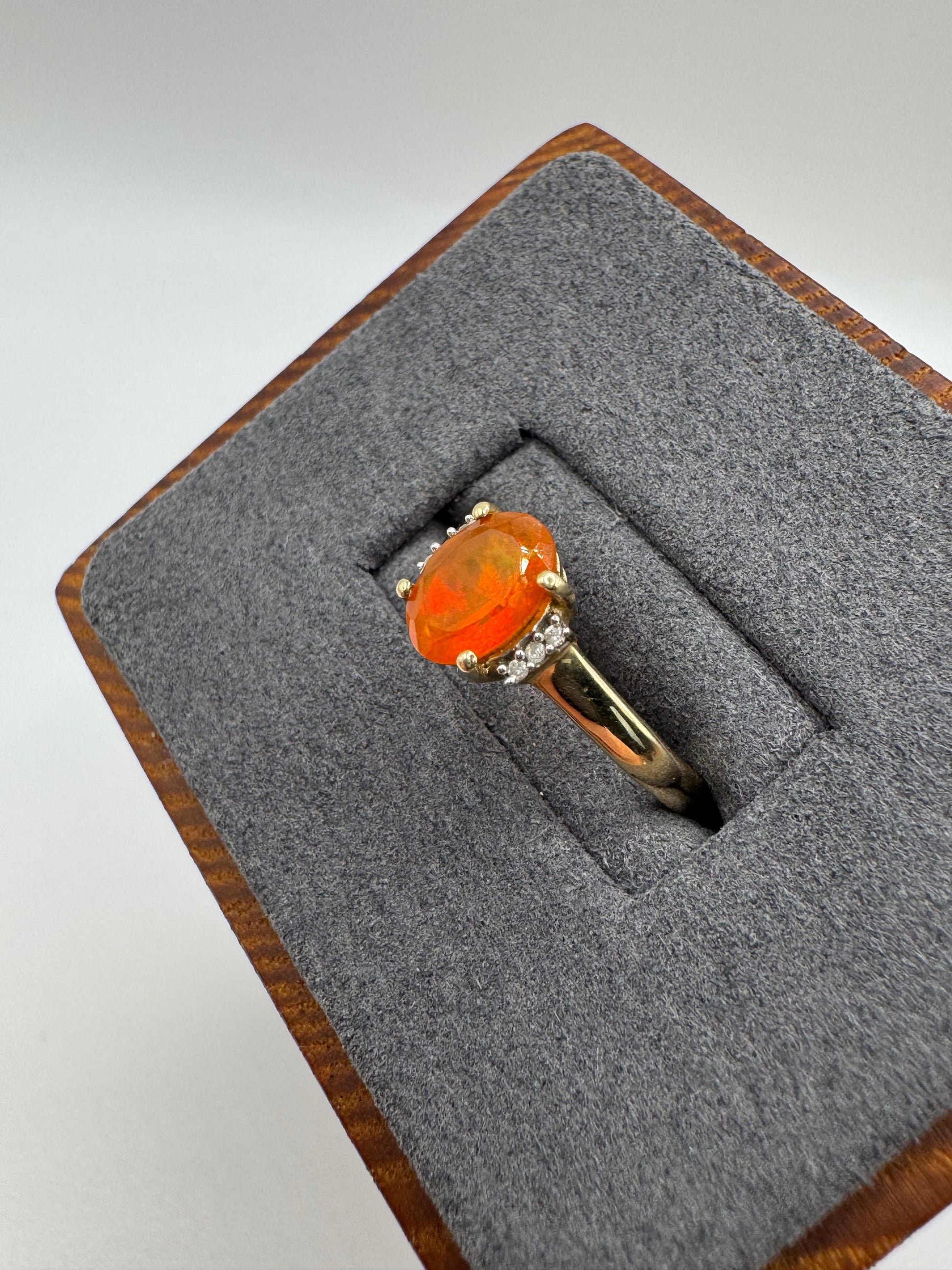 9ct gold fire opal and diamond ring