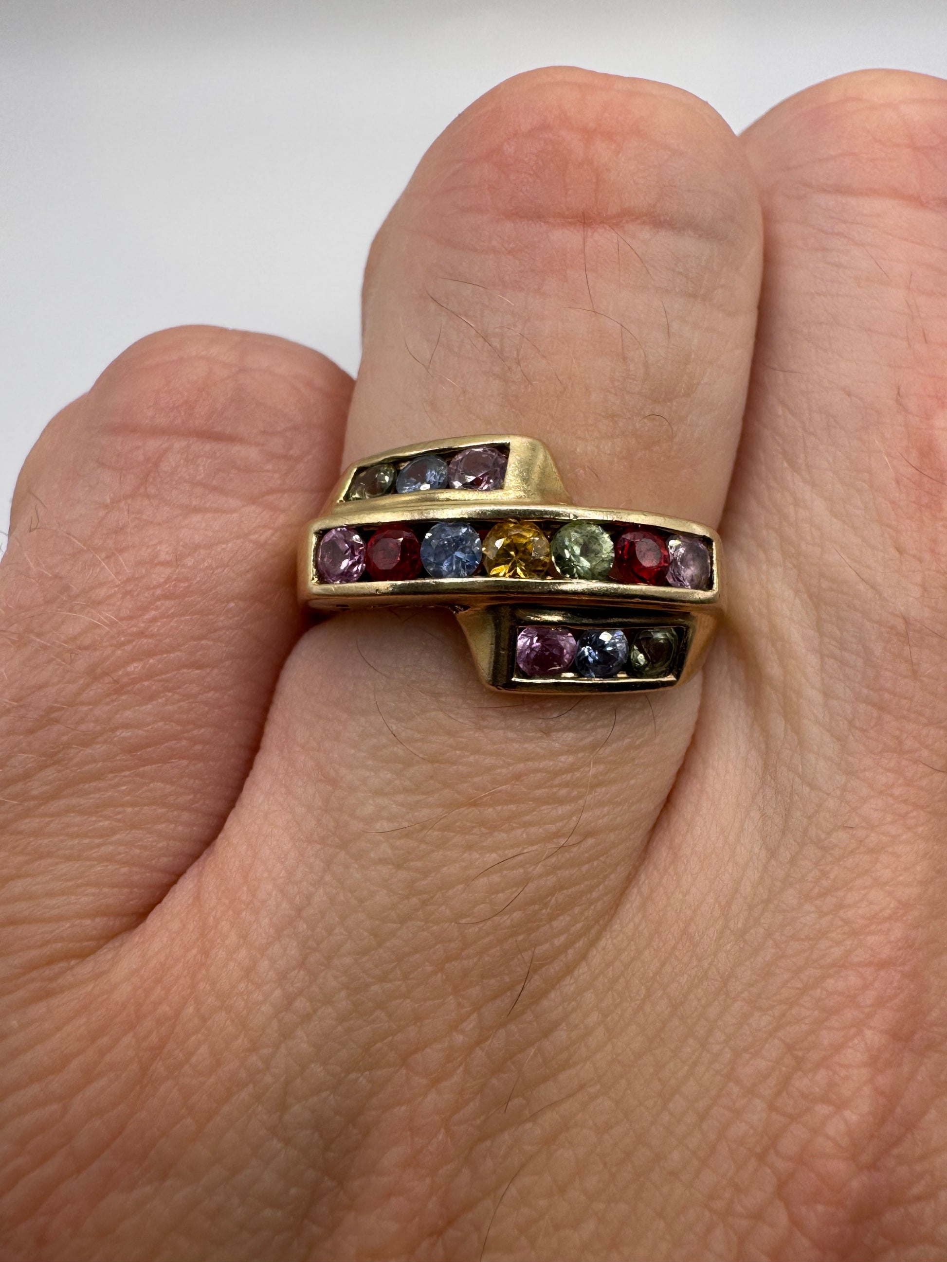 9ct gold multi-coloured sapphire ring