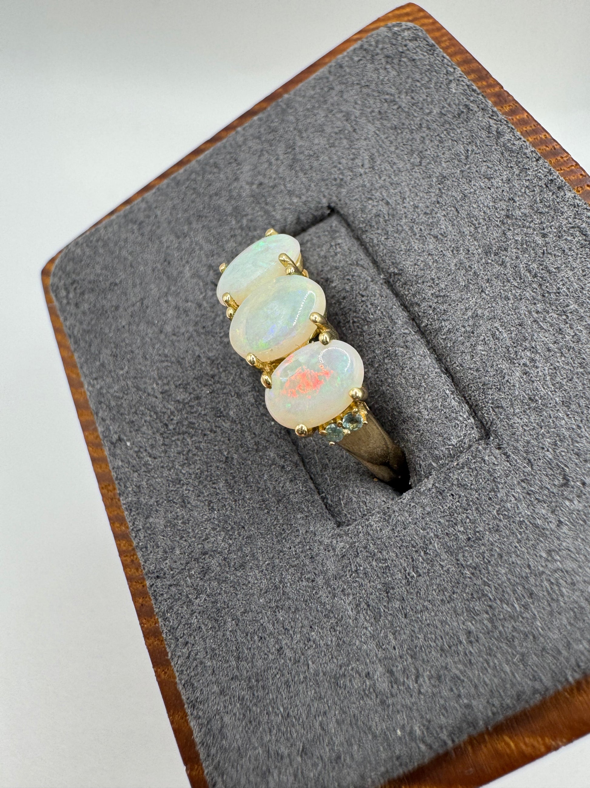 9ct gold opal and blue zircon ring