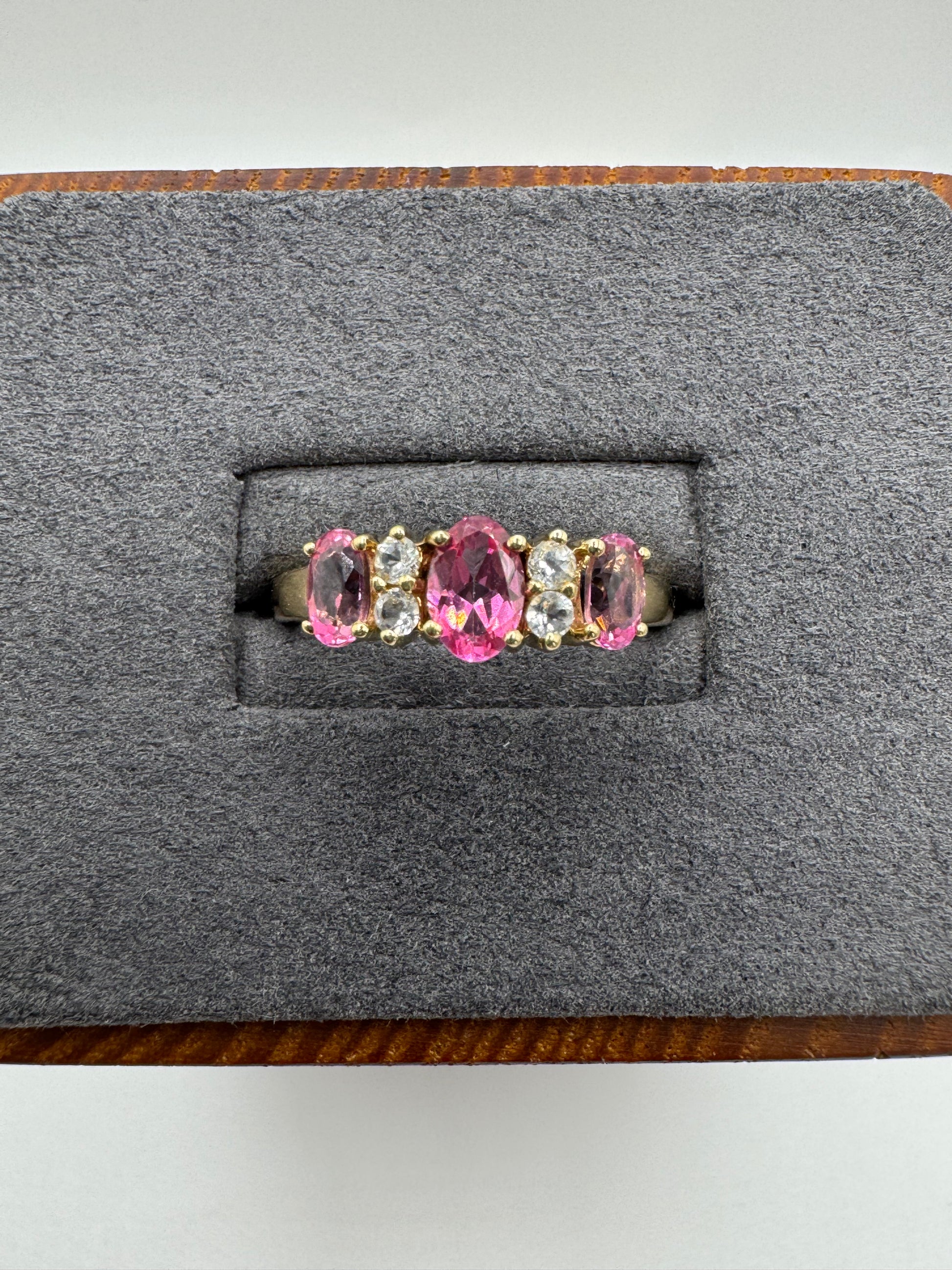 9ct gold pink topaz and zircon ring