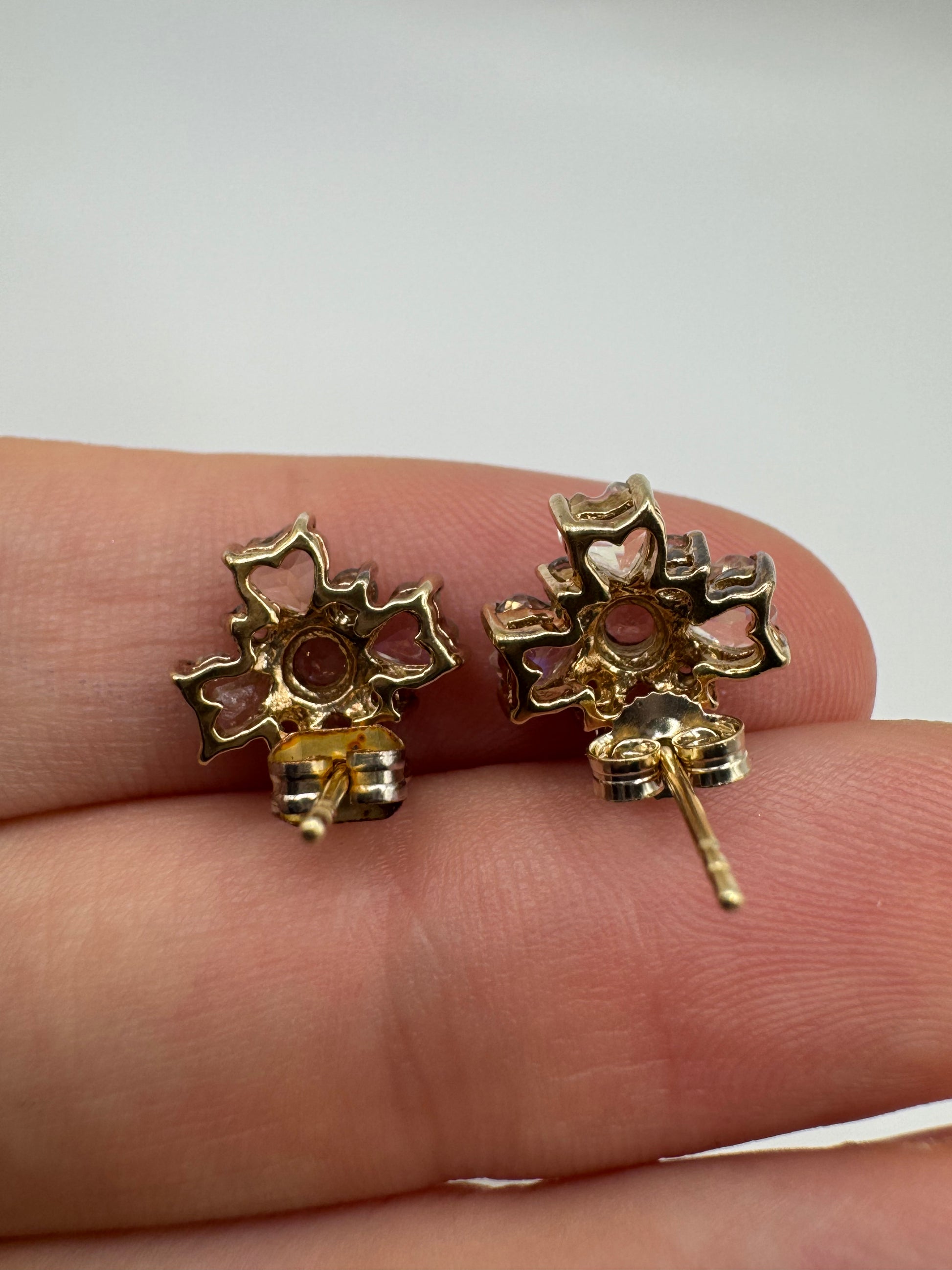 9ct gold rainbow moonstone cluster earrings