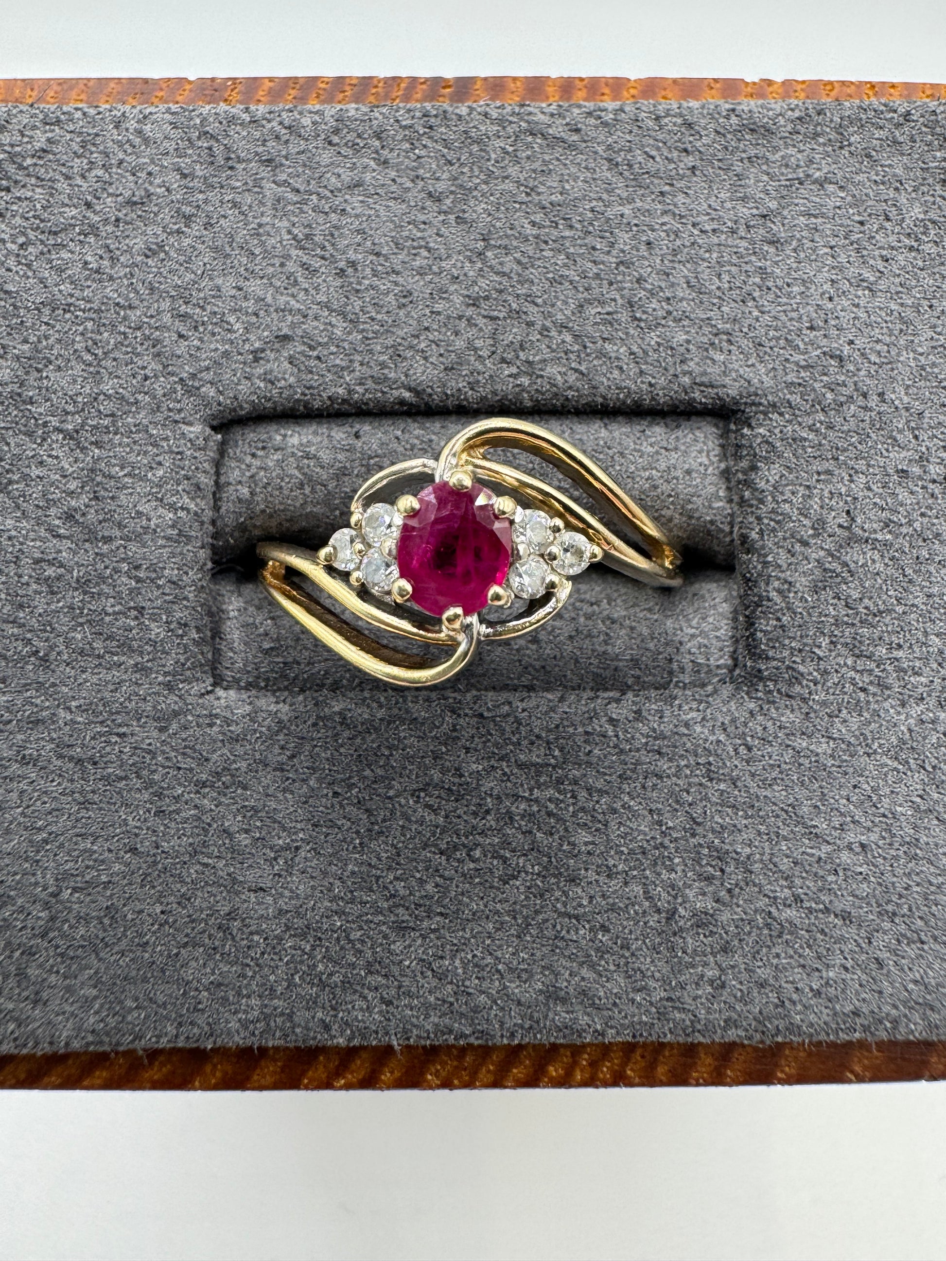 9ct gold ruby and cz cluster ring