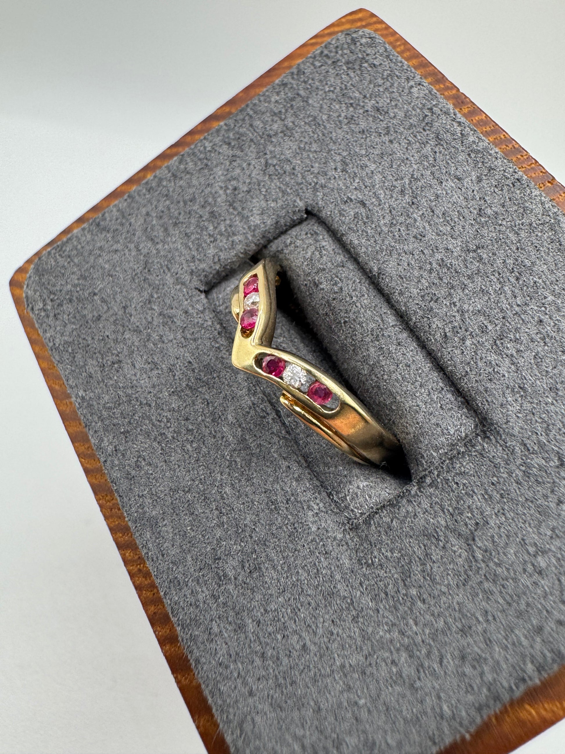 9ct gold ruby and diamond wishbone ring