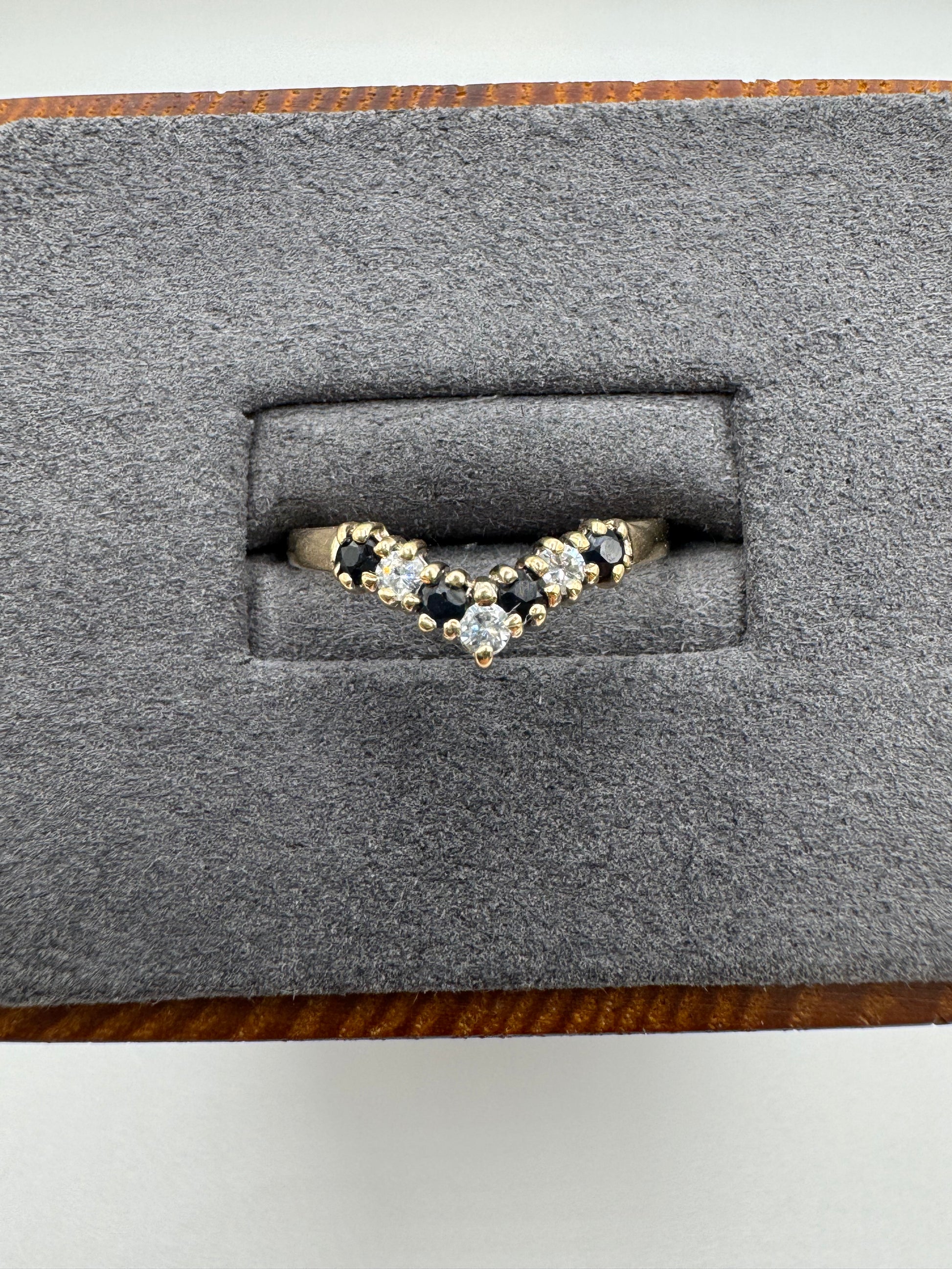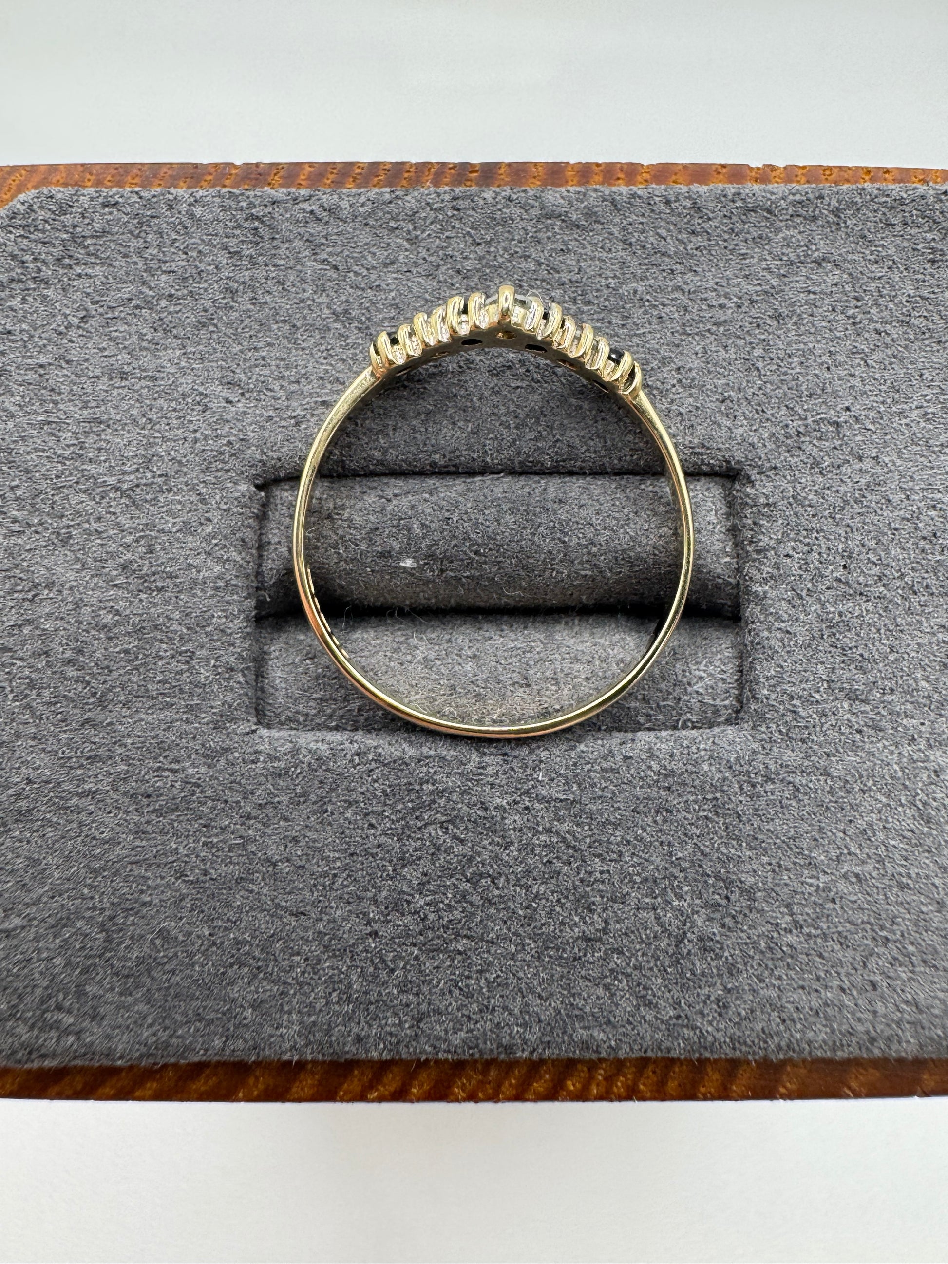 9ct gold sapphire and cz wishbone ring