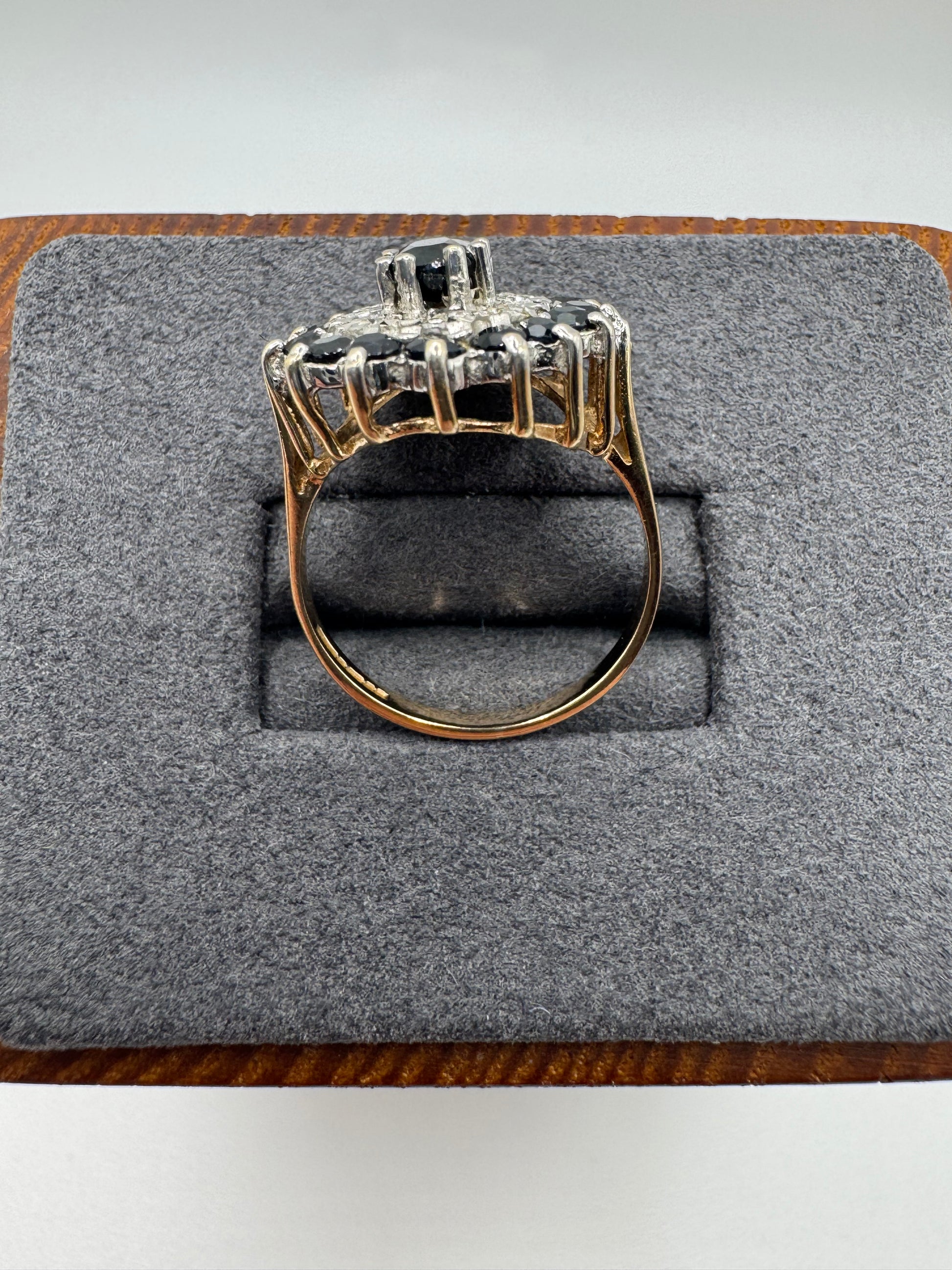 9ct gold sapphire and diamond cluster ring