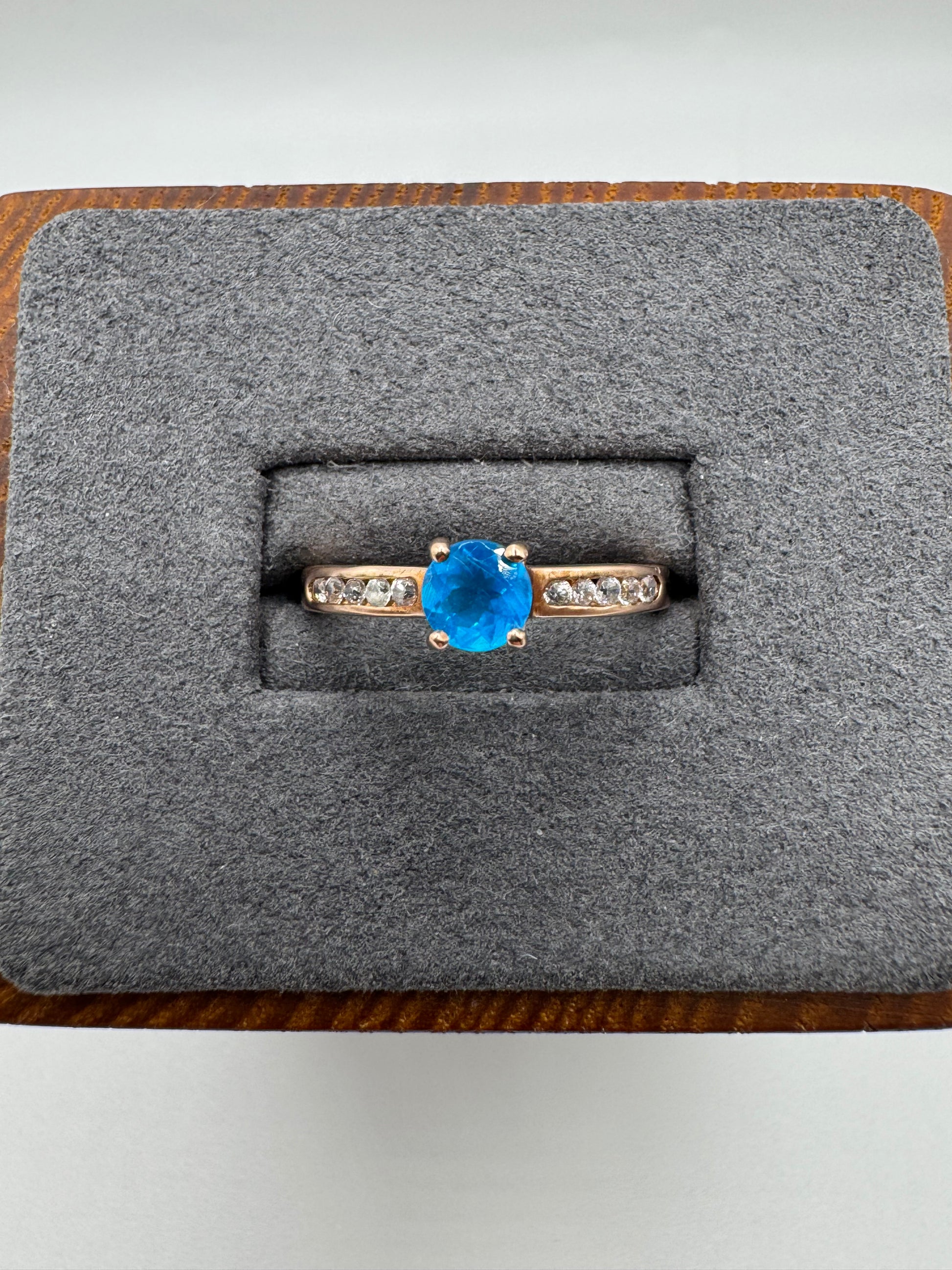 9ct rose gold blue apatite and diamond ring