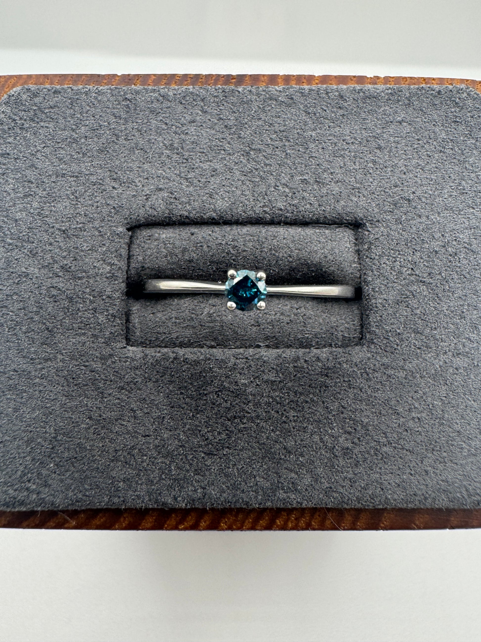 9ct white gold blue diamond ring