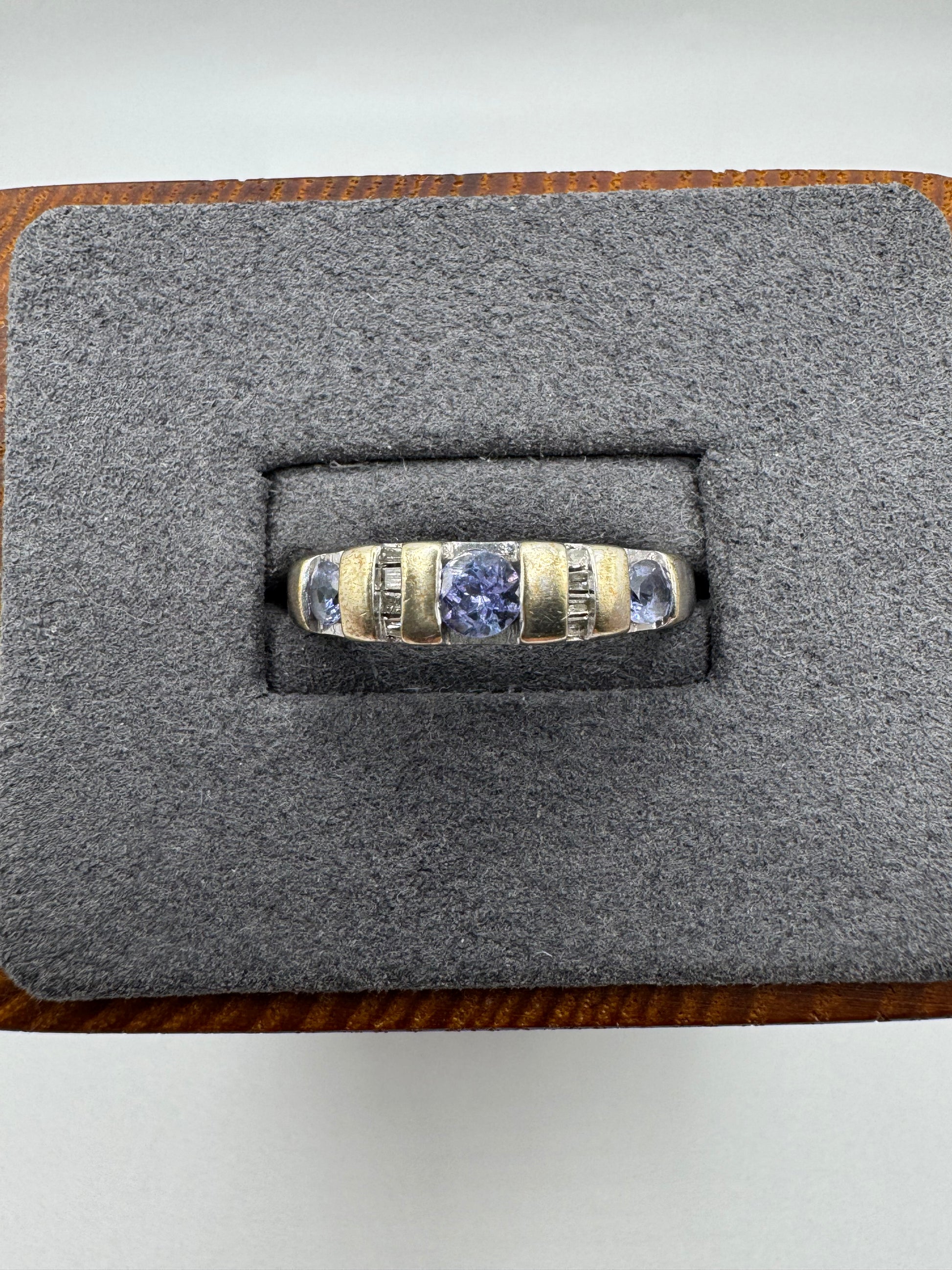 9ct white gold tanzanite and diamond ring