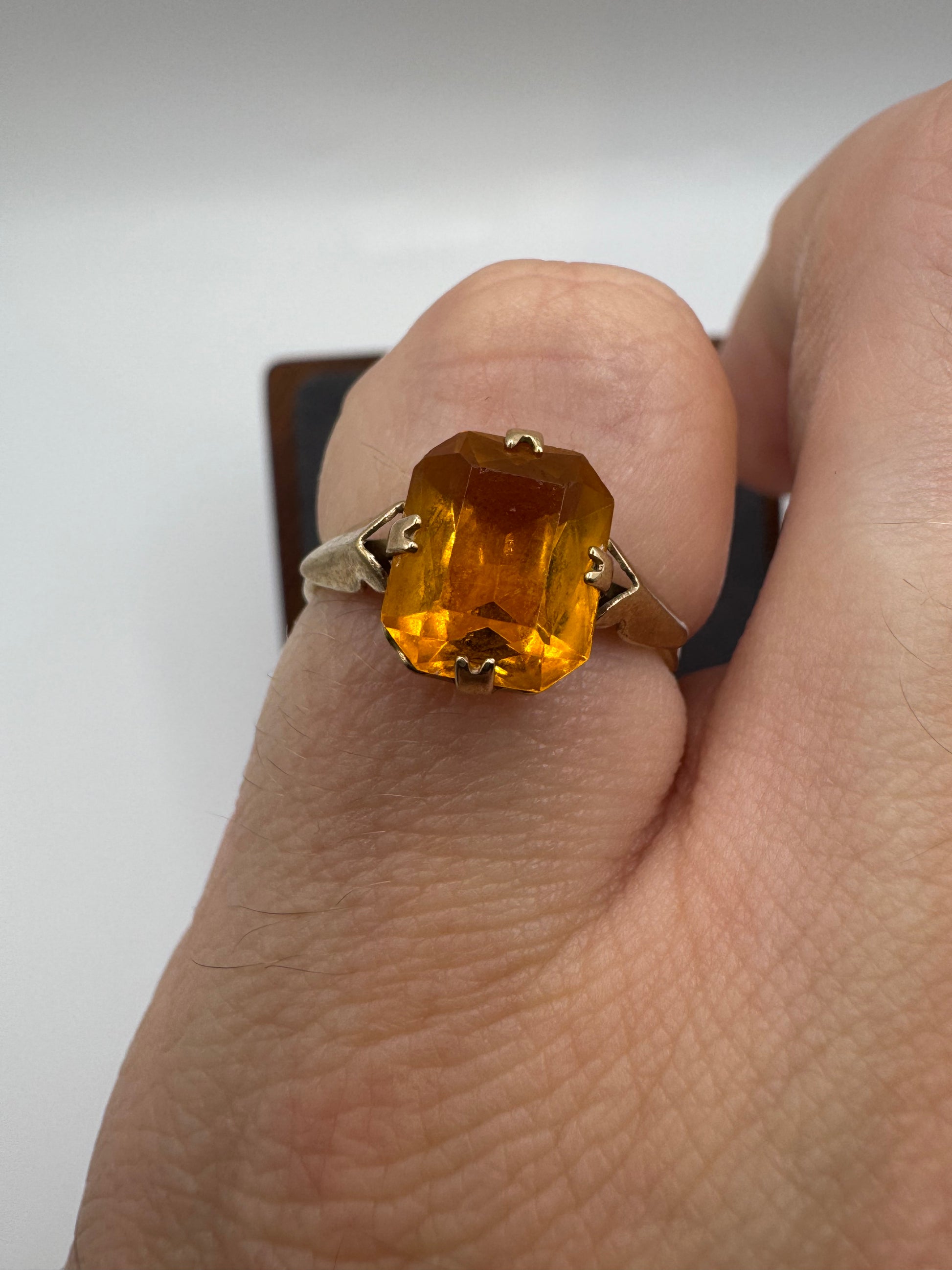 Antique 9ct gold citrine paste ring