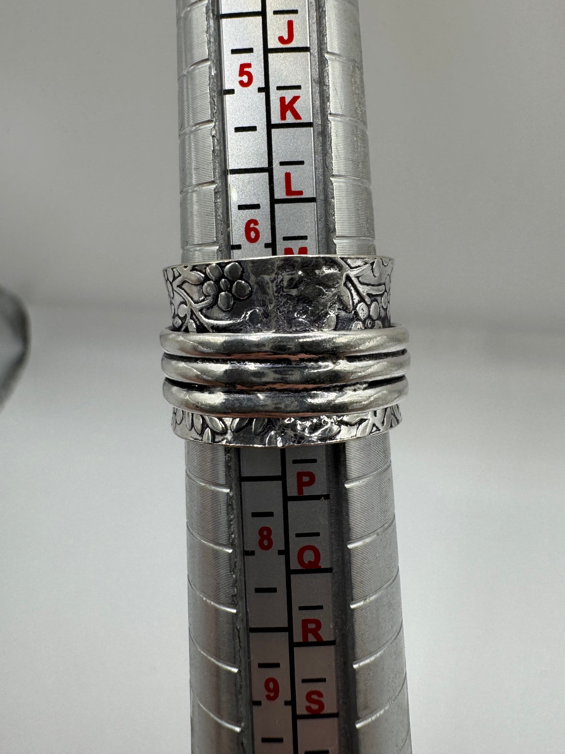 Silver teal quartz and onyx spinning ring (6.25-M1/2)